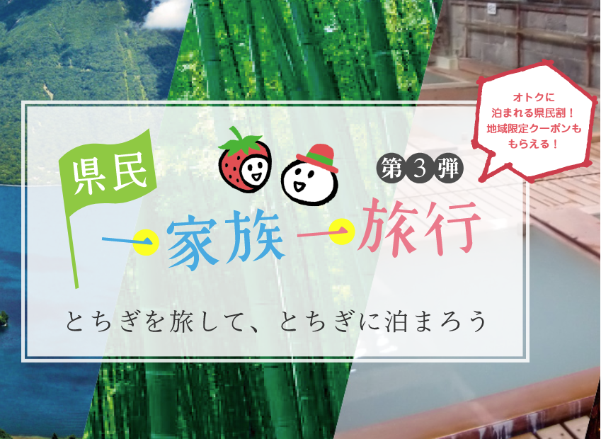 栃木県・茨城県・群馬県・埼玉県・千葉県・神奈川県・山梨県にお住まいの方の栃木県への旅行を対象に宿泊・日帰り旅行の代金を割引